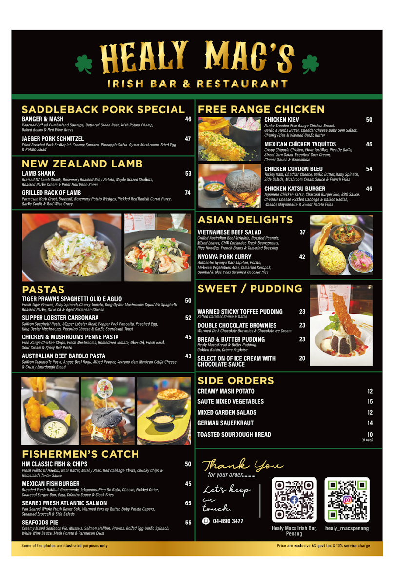 Welcome to Healy Mac's Irish Bar & Restaurant located in the picturesque Straits Quay of Tanjung Tokong, Penang. This lively venue combines a cozy atmosphere with an inviting seaside view, making it an ideal spot for gatherings with friends or family.